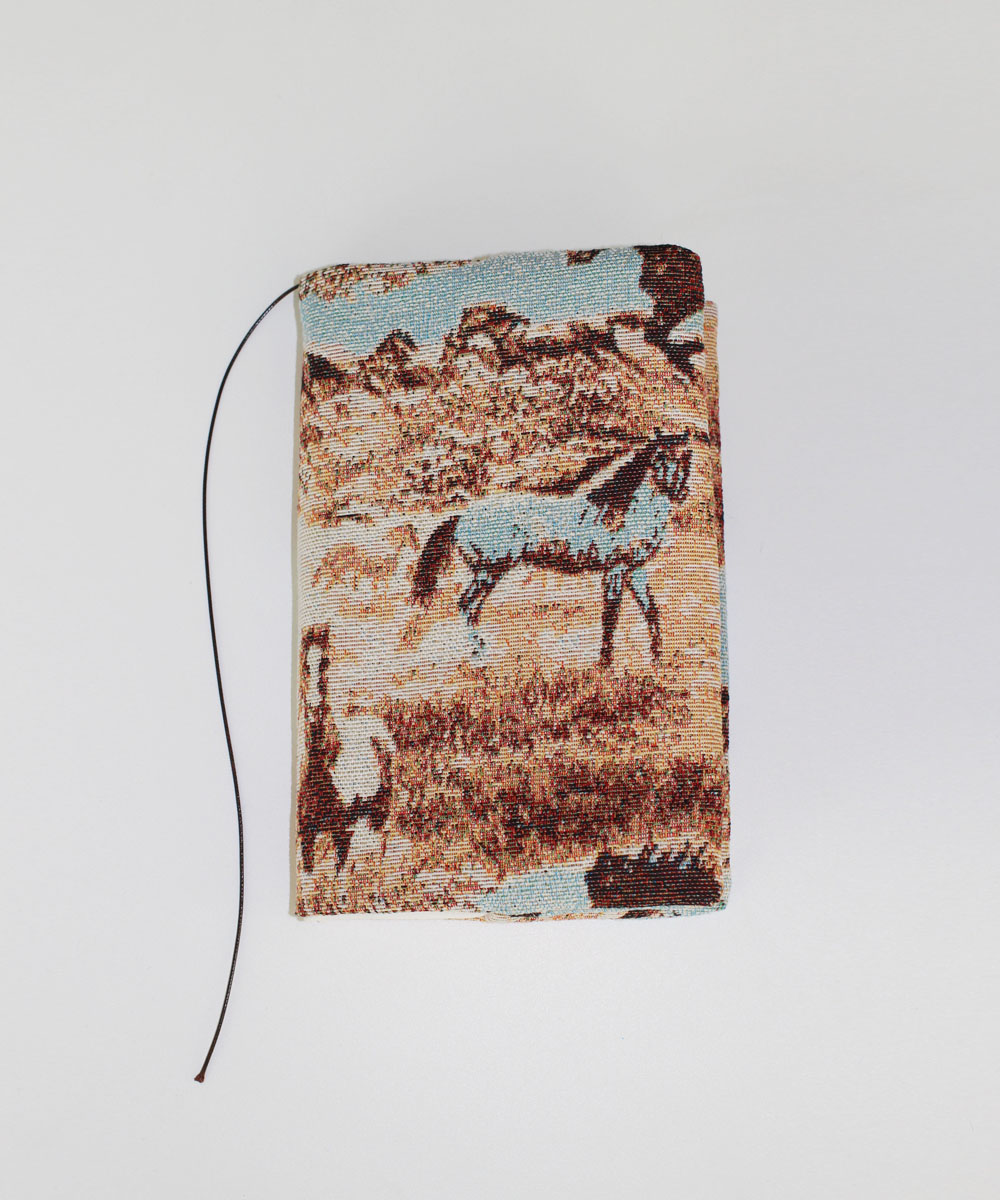 프린트가 아닌 고급스러운 느낌의 직조 원단으로 표현된 말 북커버 입니다.