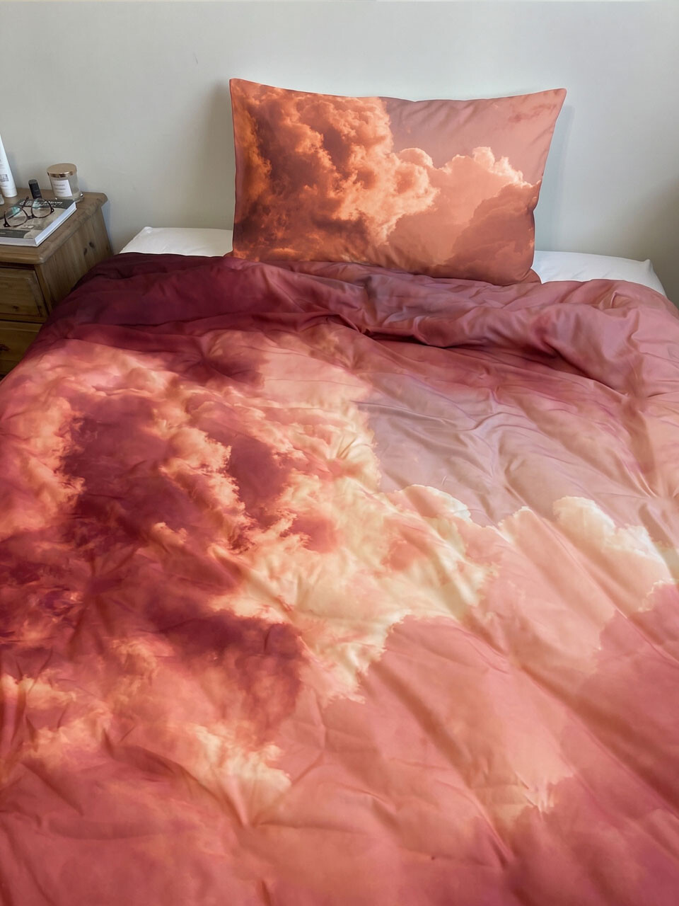 석양진 하늘의 프린팅의 침구입니다.
